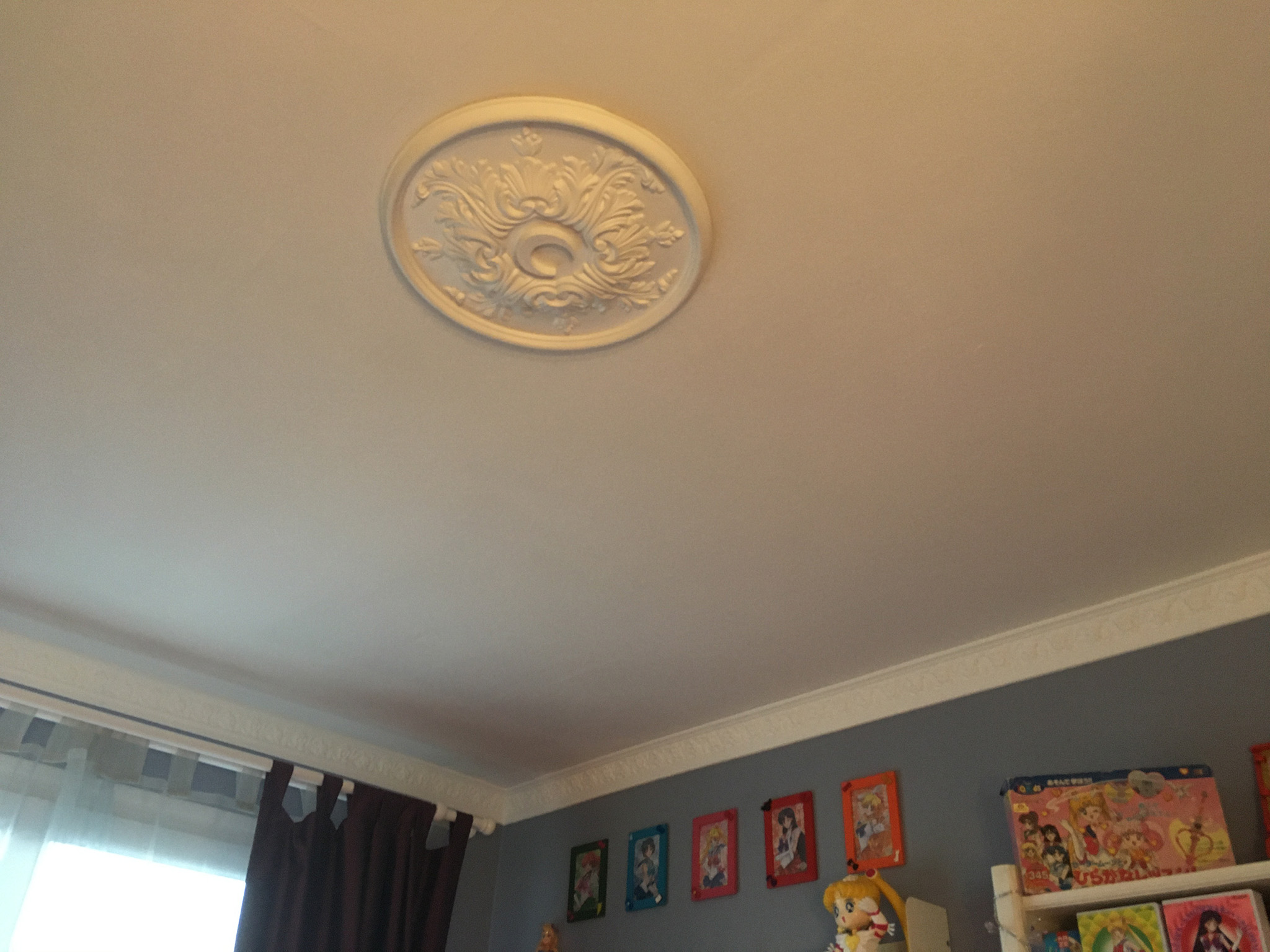 Rosace installée au plafond et customisée par mon mari avec une lune.